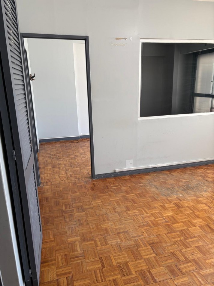 La unidad cuenta con una superficie total de 32.88 m², pisos de parquet y una distribución funcional que permite múltiples configuraciones: oficinas privadas, áreas de trabajo o salas de reuniones. Dispone de baño y sector de office/kitchenette.